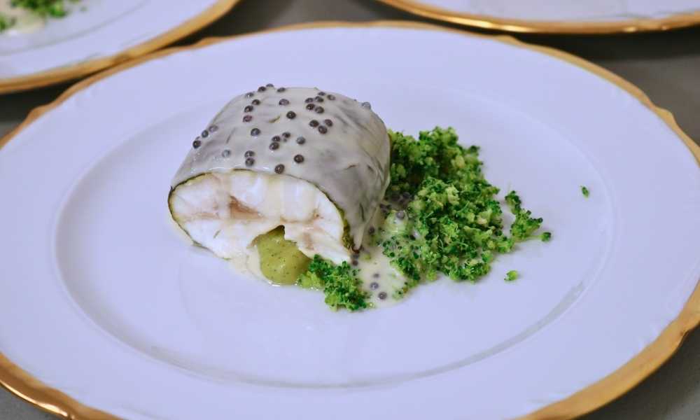 Después, los aperitivos Freixa se convirtieron en los protagonistas de la noche, donde presentamos una pieza especial, el Blini con vieira, Blue Mediterráneo y violeta. Una creación inspirada en un anillo vintage de Bvlgari de los años 70, que combina turquesas, amatistas y diamantes. El chef reinterpretó esos códigos desde la cocina con una base de blini, un velo azul translúcido que recuerda al turquesa del Mediterráneo y una flor de borraja, comestible, que alude a la amatista que corona la joya. Una pieza de nuestra colección gastronómica convertida en joya.