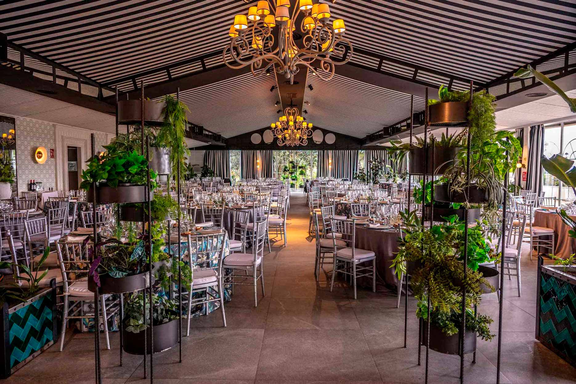 Sus instalaciones han sido reformadas por el prestigioso diseñador Pepe Leal quien ha sido el responsable de trasladar el espíritu de las orangeries venecianas. Los acabados artesanales y los sutiles toques art decó convierten cada rincón en ambientes llenos de singularidad y personalidad a muy pocos kilómetros de Madrid.